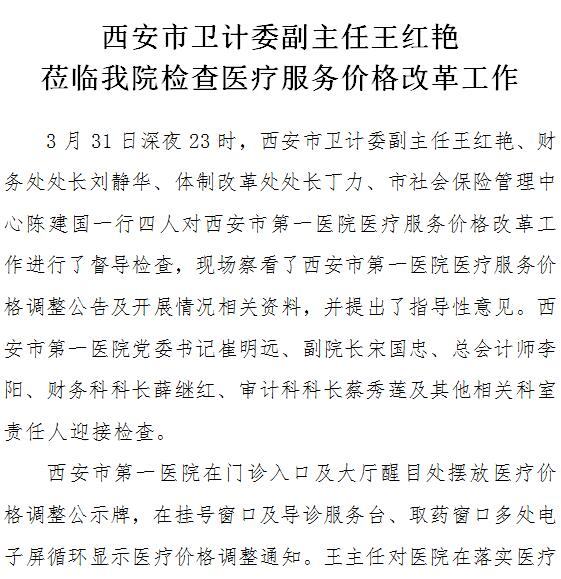 西安市卫计委副主任王红艳莅临我院检查医疗服务价格改革工作
