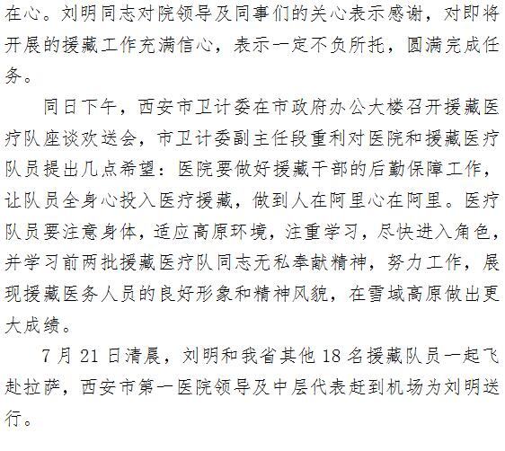 西安市第一医院欢送眼科刘明同志参加陕西省第三批“组团式”援藏医疗队
